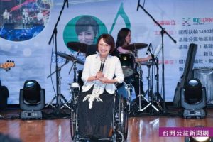 ▲基隆市府特別由社會處處長楊玉欣代表致詞,這位罕病天使與生命鬥士,坐在輪椅上感謝扶輪人願意慷慨奉獻心力與金錢,服務與愛心。帶給基隆扶輪人與市民美好的周日夜晚音樂饗宴。(圖/基隆扶輪公益演唱會籌委會提供)